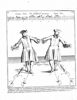 Tанцевальные па закодированы символами, Размеченный план пола некоторым образом соотнесен с музыкой (там 2 измерения, время и тон) посредством чисел с вариацией шагов в зависимости от вариации звуков. Числа исполняют двойную функцию: обозначают последовательность шагов и привязку к музыке. Зеркально разделенные партнеры визуально объединены посредством их почти соприкасающихся рук, симметричных поз, частичного совпадения траекторий движения и схождения в одной точке линий перспективы в композиции рисунка. Эта простая и в то же время искусная манера исполнения становится провозвестником современного способа описания движений.